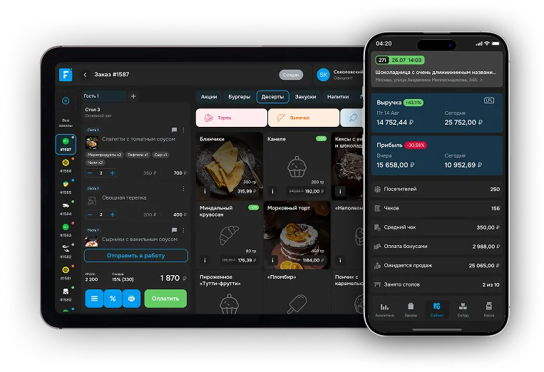 FUSIONPOS — отечественный сервис (POS-система), позволяющий автоматизировать процессы и вести учет в заведениях общественного питания: Ресторанах, Кафе, Кофейнях, Пекарнях, Пиццериях, Бургерных, Фудтраках, Кальянных и других точек.