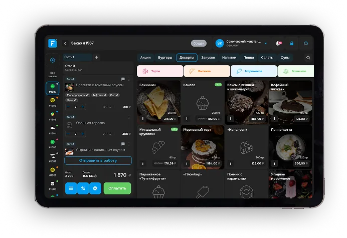 Очень важный шаг автоматизации кафе — это выбор программы для работы. После общения с несколькими владельцами кафе, мы выделили один из самых используемых сервисов для автоматизации работы кафе — FUSIONPOS.