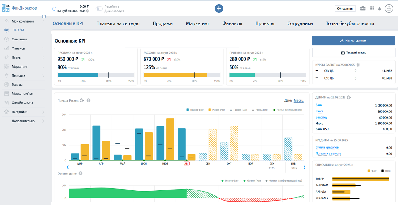 КУБ24 ФинДиректор — сервис управленческого учёта и сквозной аналитики по финансам, маркетингу, продажам и товарам.
