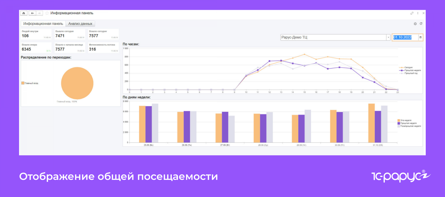 1С-Рарус: Система подсчета посетителей — сервис для подсчета и анализа посетителей в магазинах и торговых центрах.