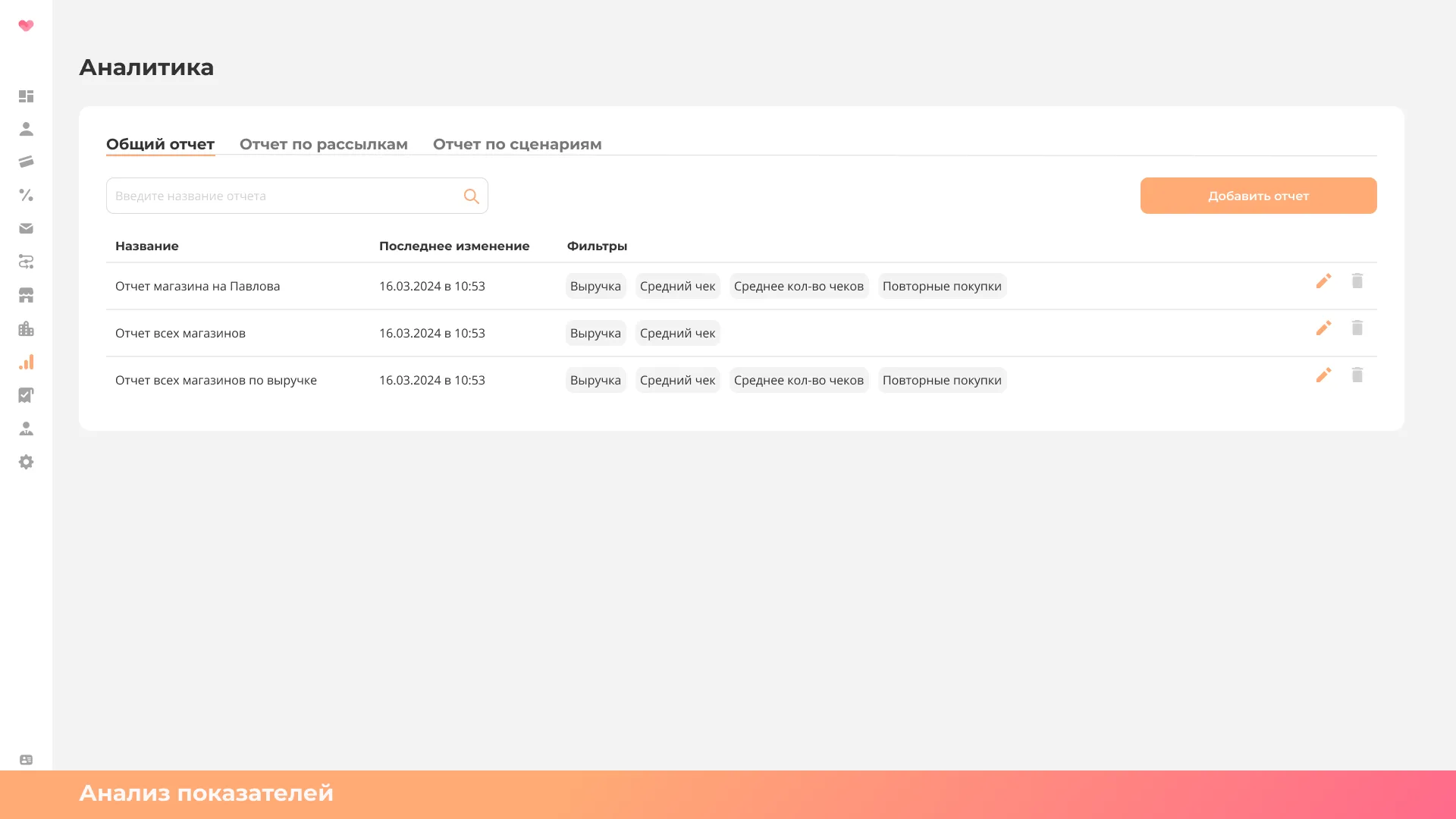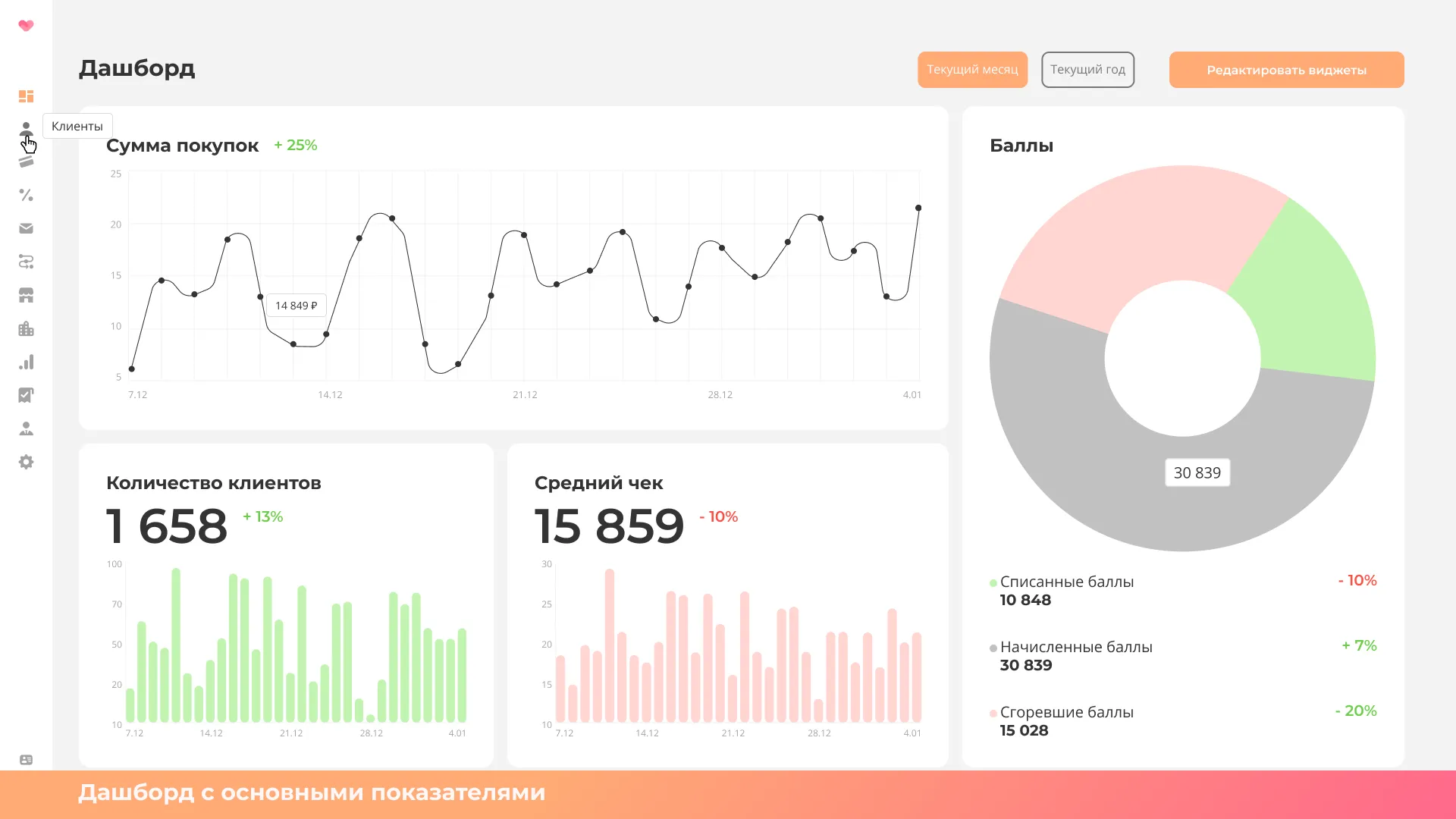 - Анализировать продажи и клиентов. Все показатели на одном удобном дашборде.