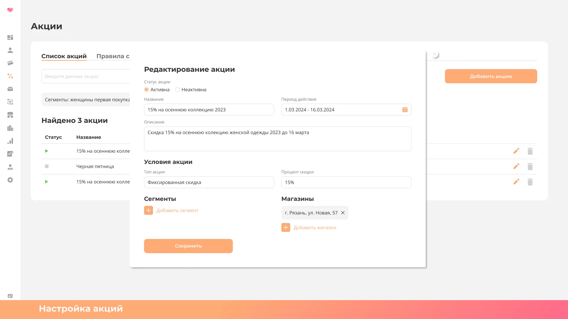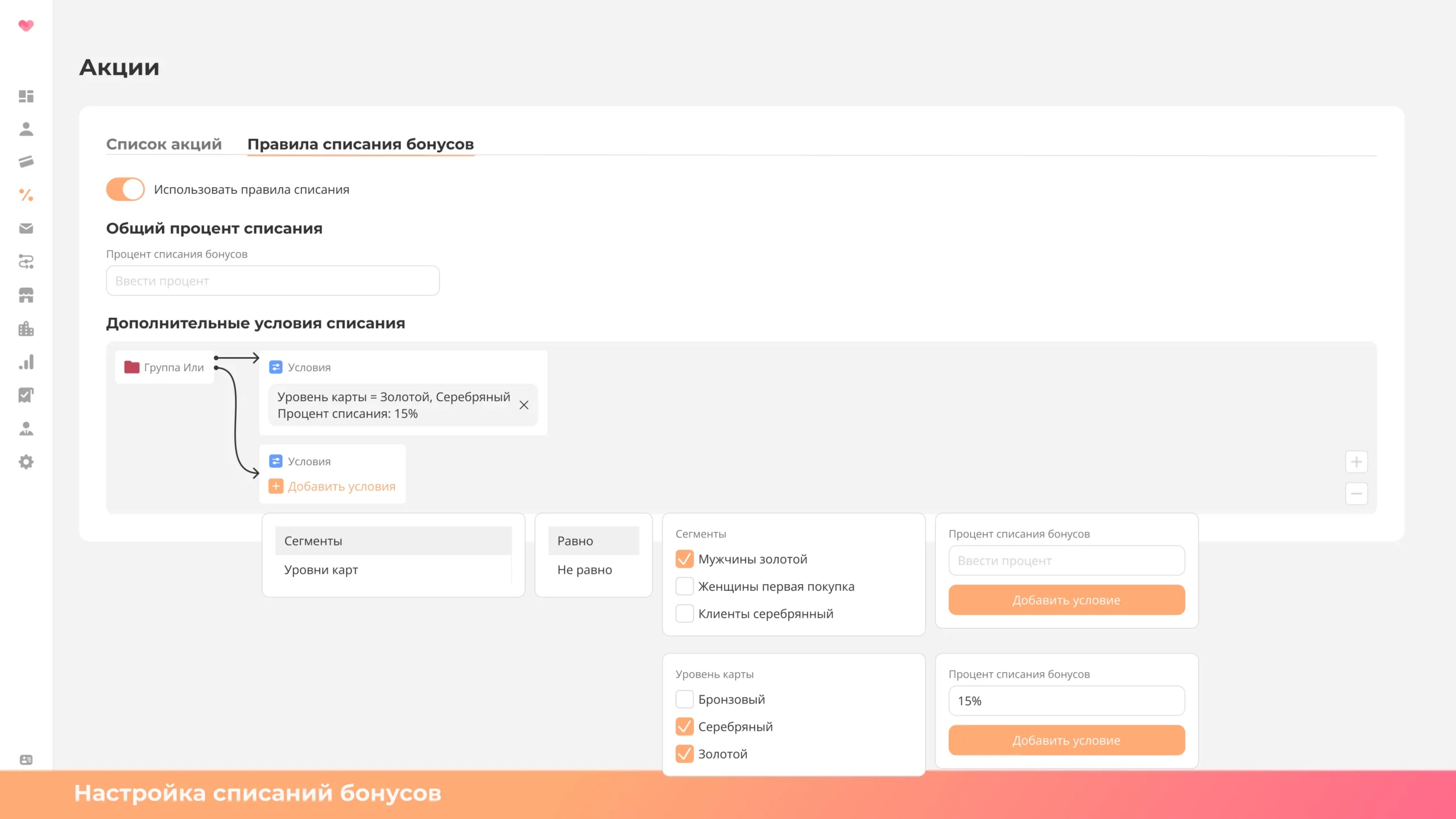 - Запускать триггерные сценарии: автоматически начислять бонусы в день рождения, за регистрацию или приведенных друзей.