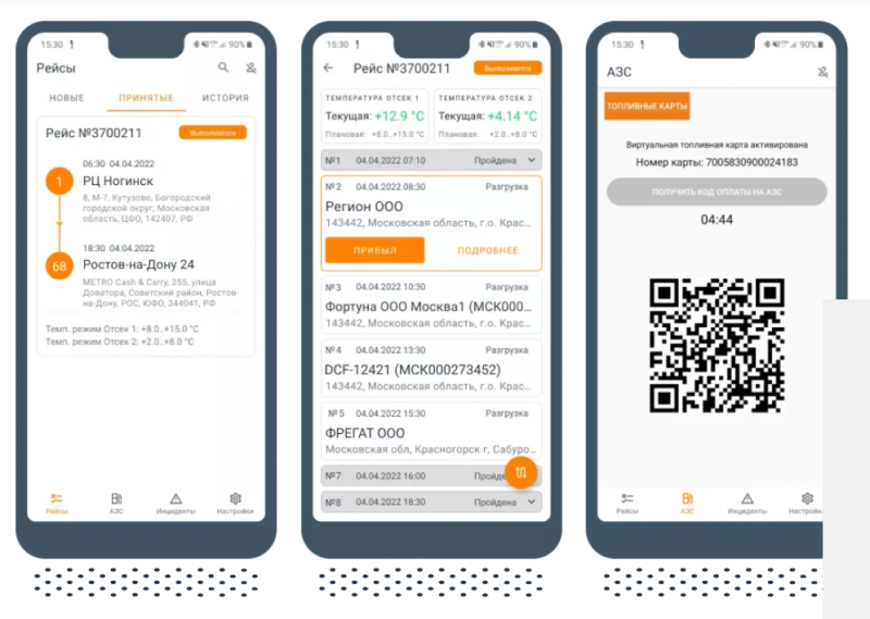 Для автоматизации коммуникаций с водителем, в решении реализовано мобильное приложение.
