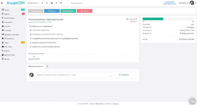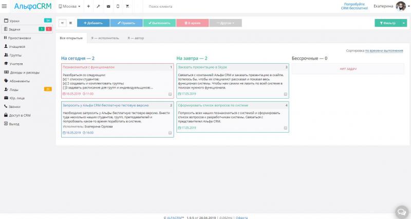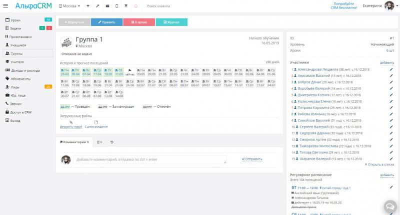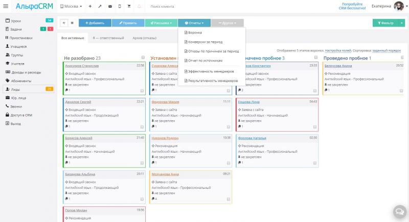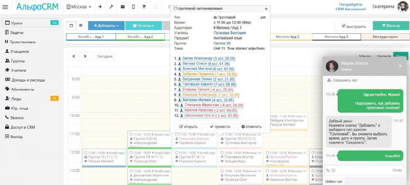 Альфа CRM — система для освобождения администраторов, менеджеров, и преподавателей от рутинных задач: заполнения журналов, работы с должниками, расчета зарплаты по разным ставкам за индивидуальные, групповые уроки. В системе доступен автоматический расчет абонементов для учеников, а человеческий фактор и возможность ошибок сводится к минимуму.