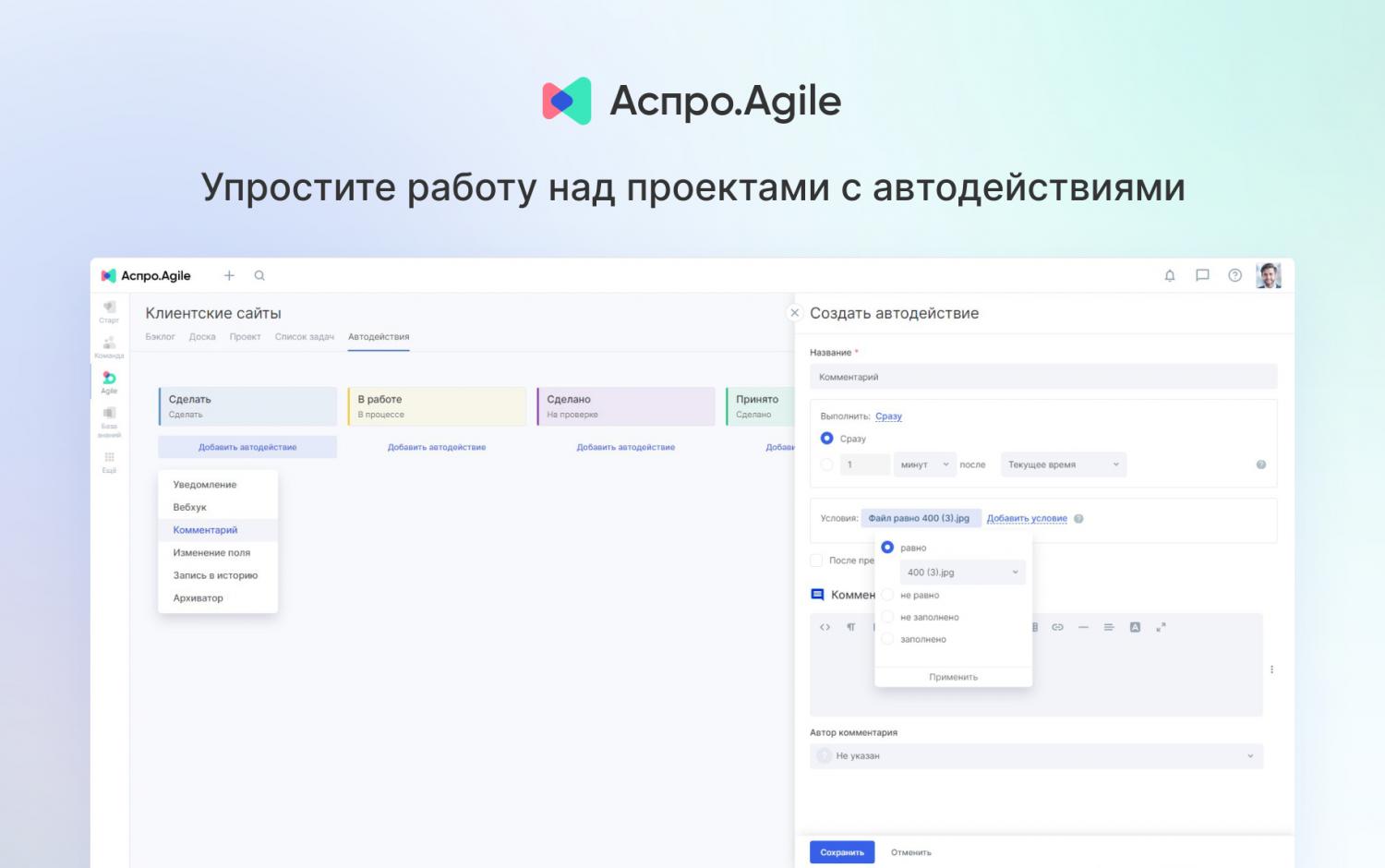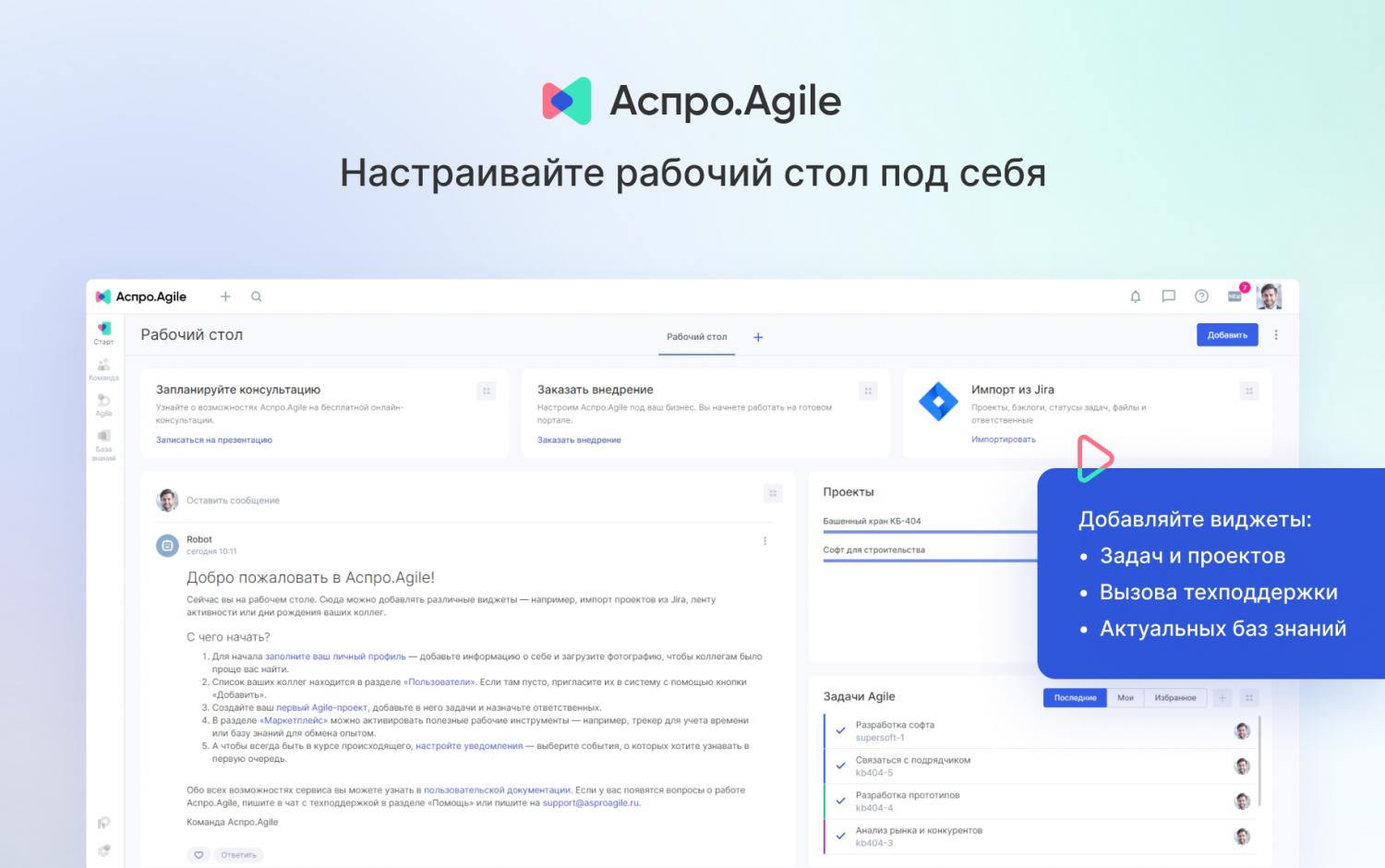 Аспро.Agile — платформа для управления проектами по принципам Agile. Система содержит в себе набор инструментов, которые помогут выстроить гибкий рабочий процесс в команде.
