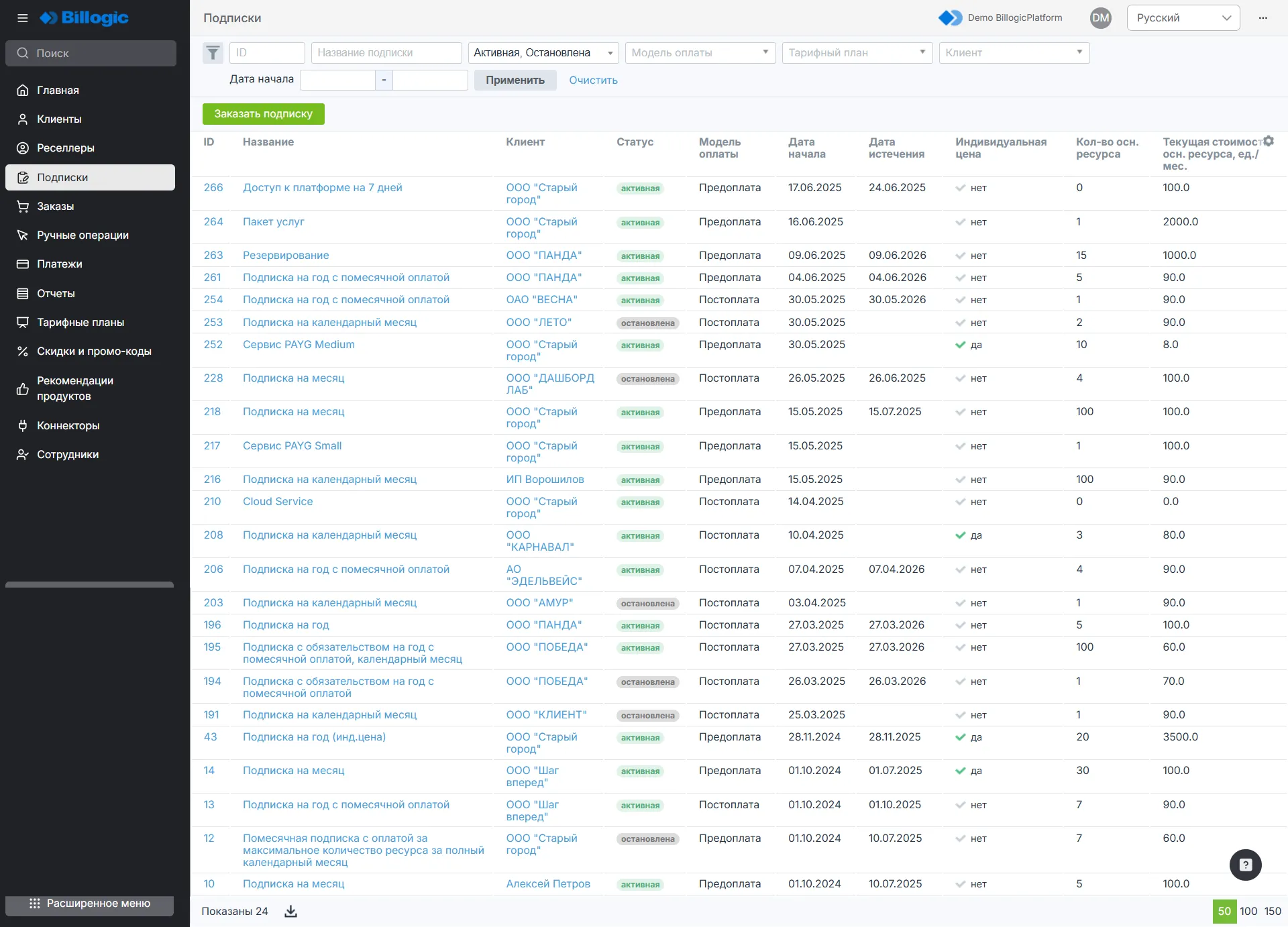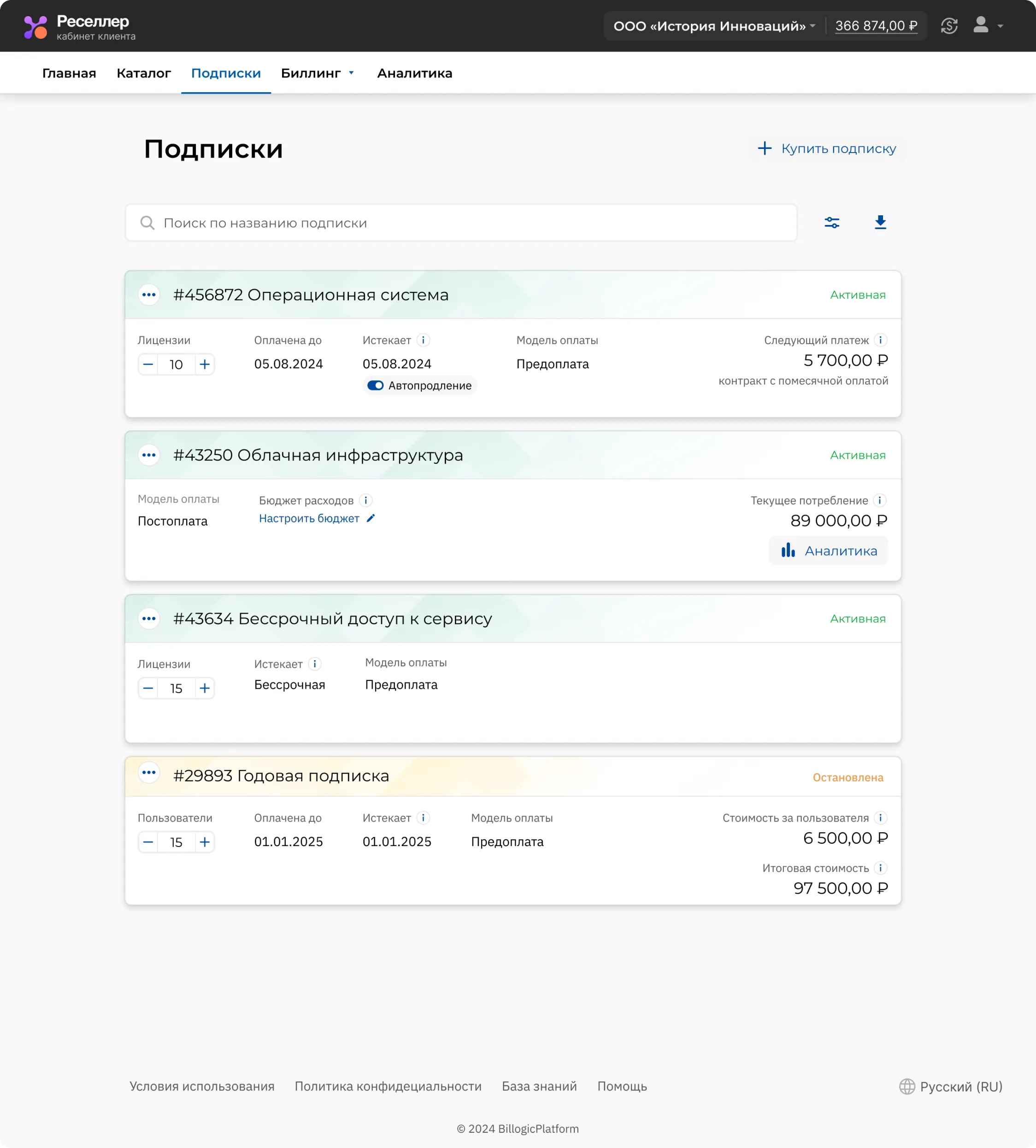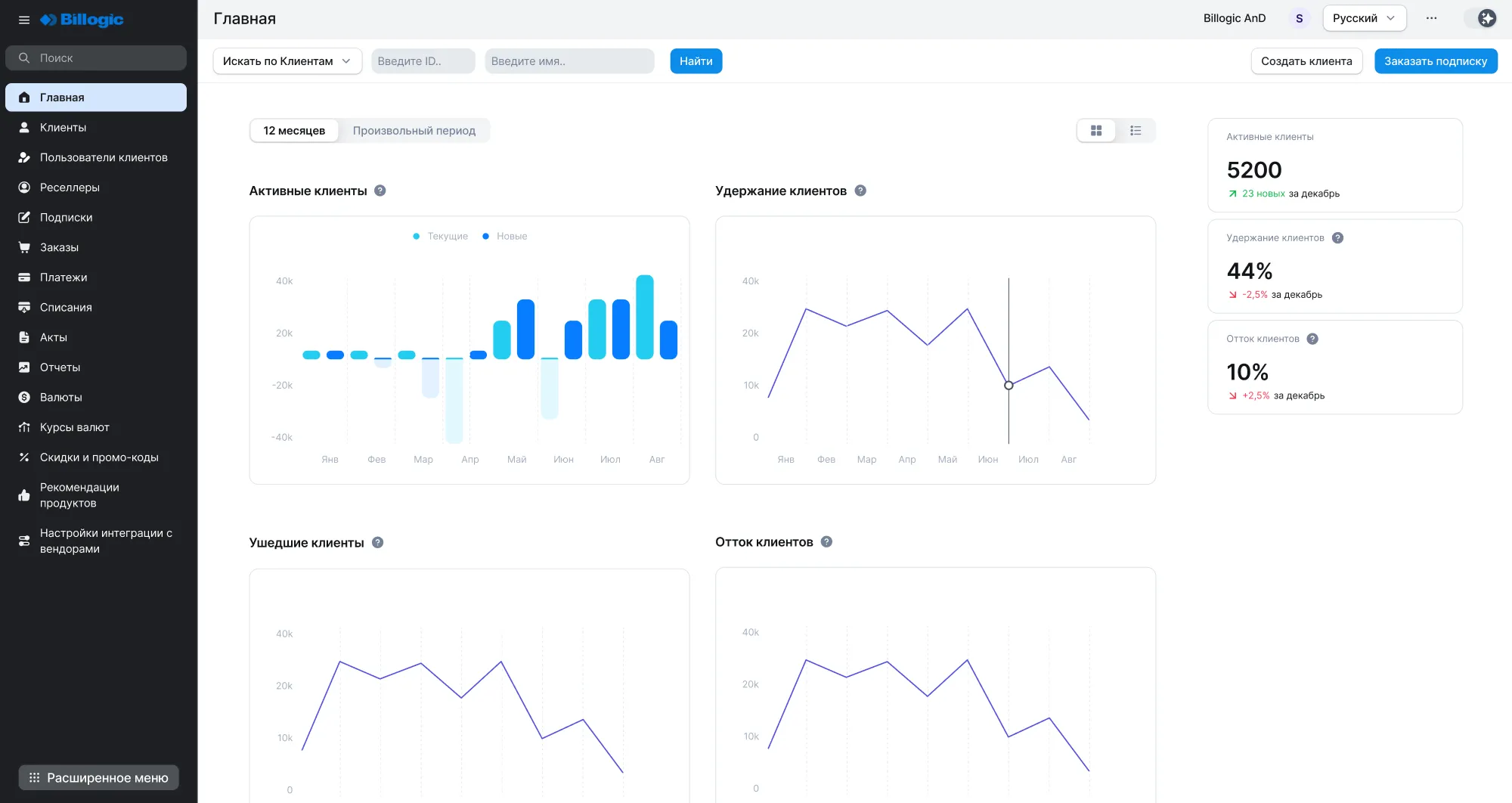 BillogicPlatform — российская платформа для автоматизации биллинга и управления подписками, охватывающая весь цикл: от провижининга и расчётов до партнёрских продаж.