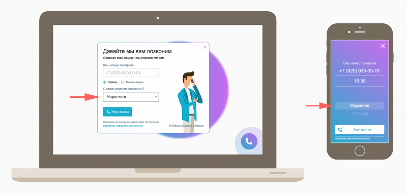Виджет работает! Обратный звонок появляется прям в нужный момент, когда клиент готов сделать заказ.