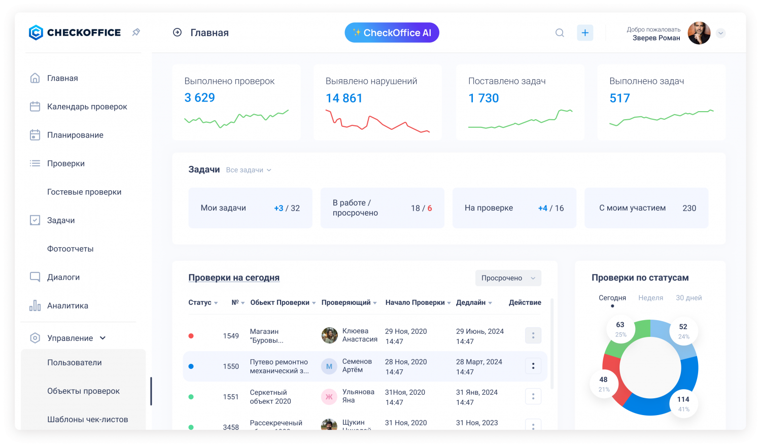 Клиенты CheckOffice отмечают значительное повышение производительности труда, снижение количества фальсификаций до 100%, сокращение числа нарушений на 75% и более.