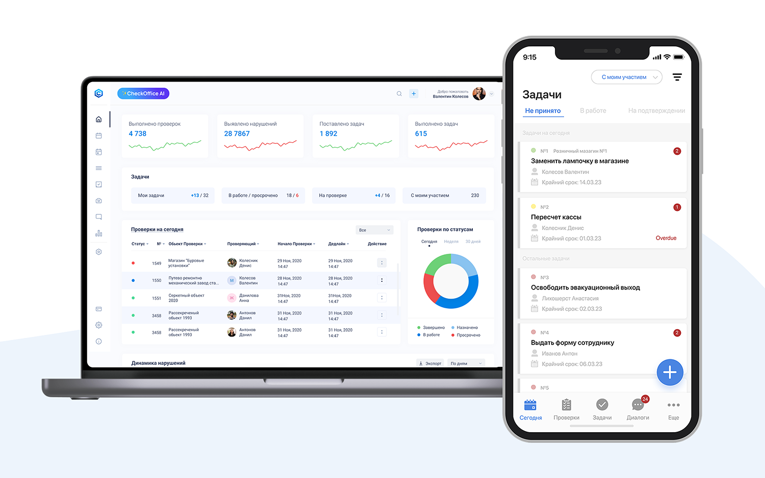 CheckOffice — сервис мобильного аудита полного цикла на основе электронных чек-листов. CheckOffice помогает автоматизировать работу с проверками, нарушениями и задачами. В сервисе можно создавать чек-листы, планировать и проводить проверки, фиксировать нарушения и контролировать их устранение, управлять задачами, общаться внутри команды, формировать аналитику и отчеты.