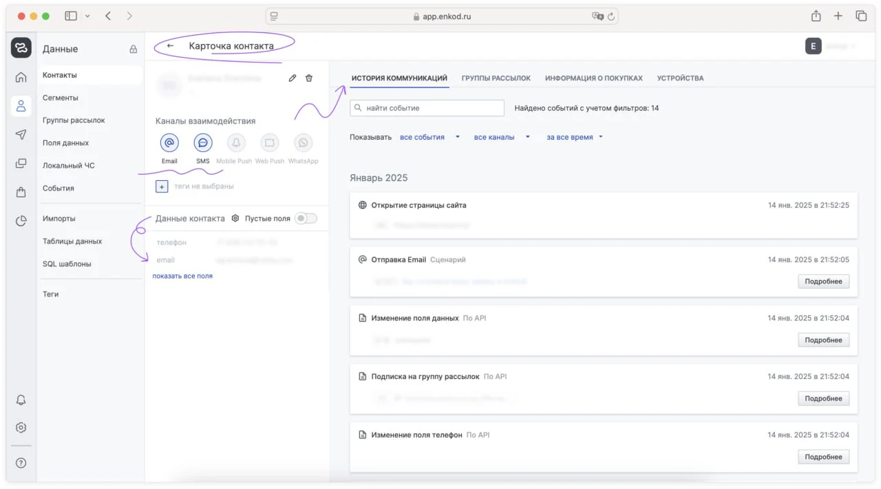 - Автоматические многоканальные рассылки. Общайтесь с клиентами там, где им удобно: email, push, sms и мессенджеры.