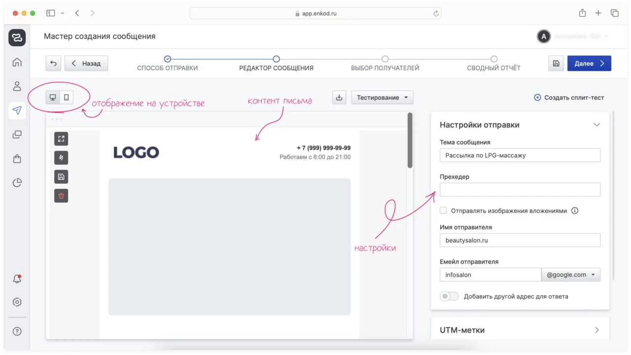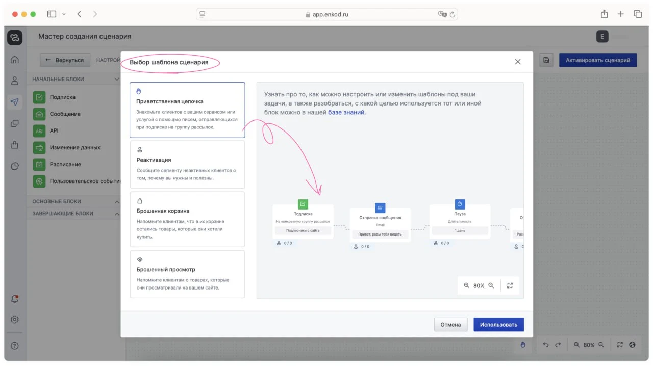 - Сценарии отправки. Составляйте карту рассылок, по которой будут отправляться письма.