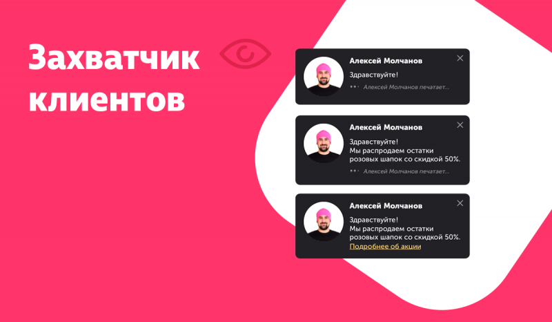 - 5. Захватчик внимания — этот виджет выглядит как окно оповещения в социальных сетях, создаётся впечатление, что посетителю пишет живой человек.