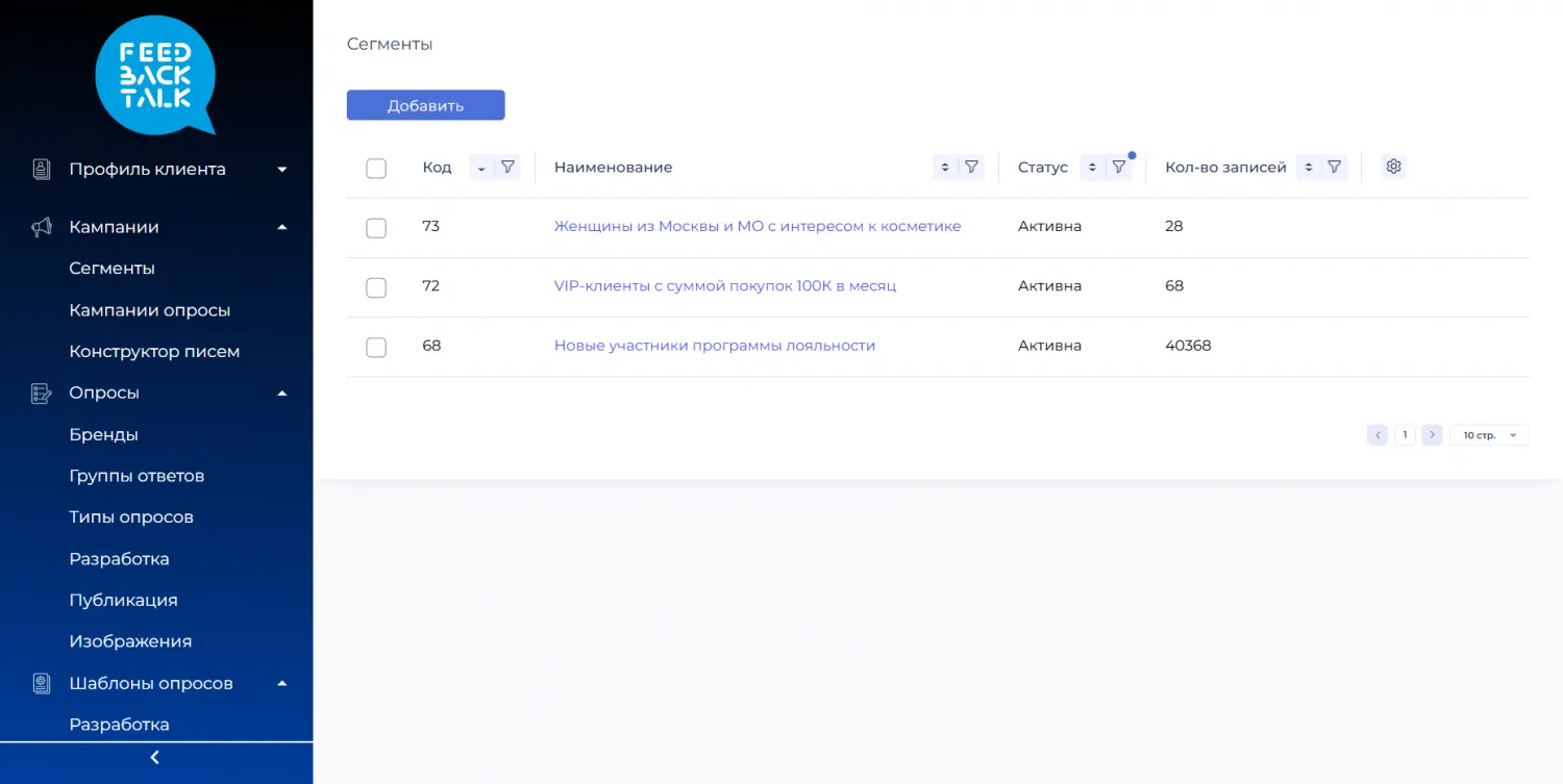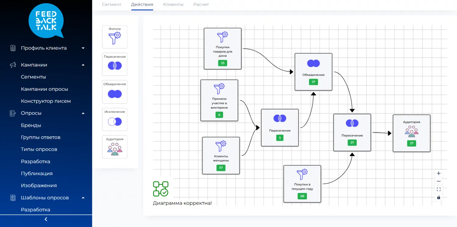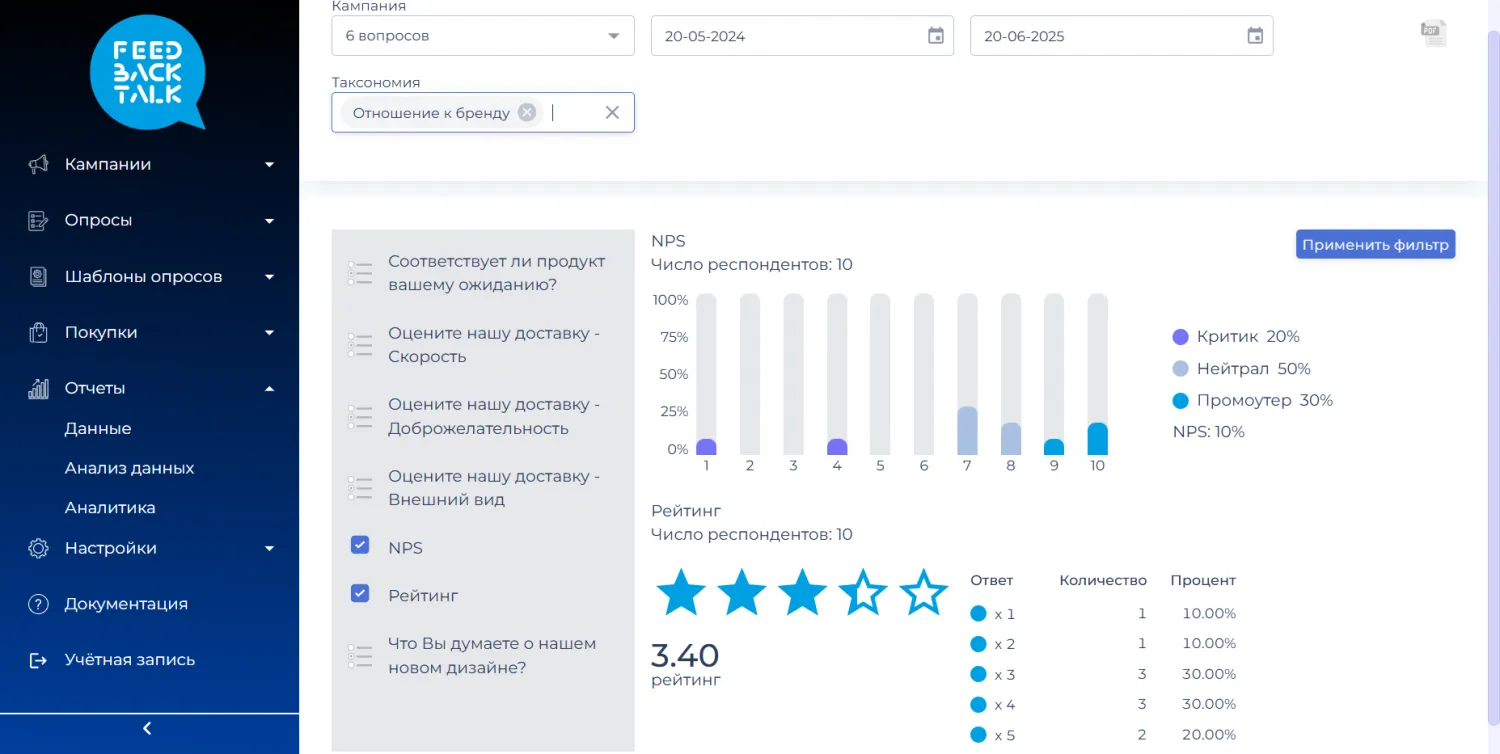 Практичный инструмент для сбора обратной связи и анализа клиентского опыта. Помогает лучше понимать потребности пользователей и быстрее улучшать продукт. Быстро создаём опросы, сегментируем респондентов и сразу видим аналитику. Интерфейс понятный, команда без проблем разобралась.