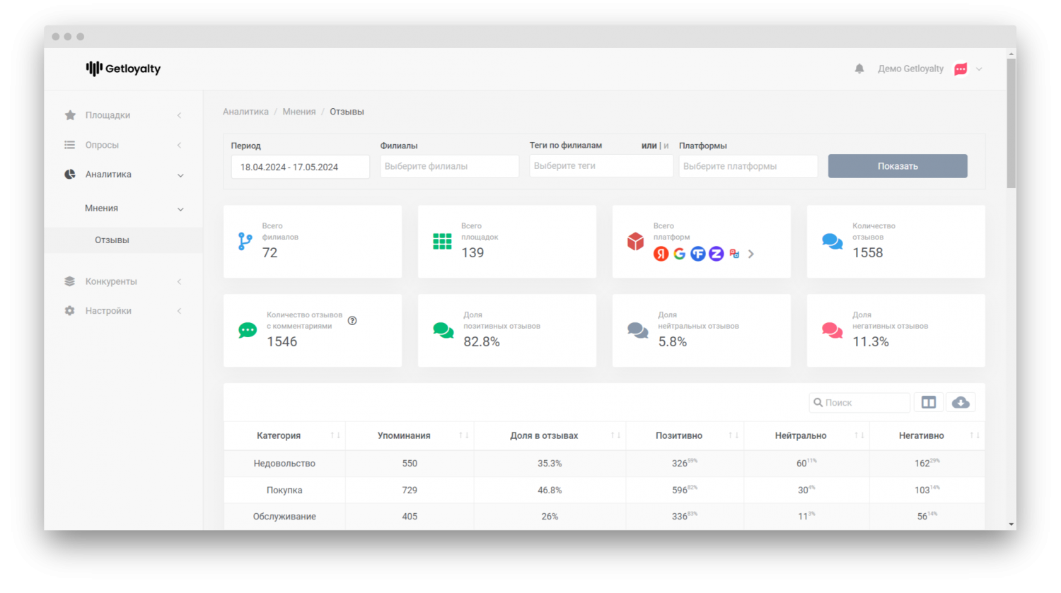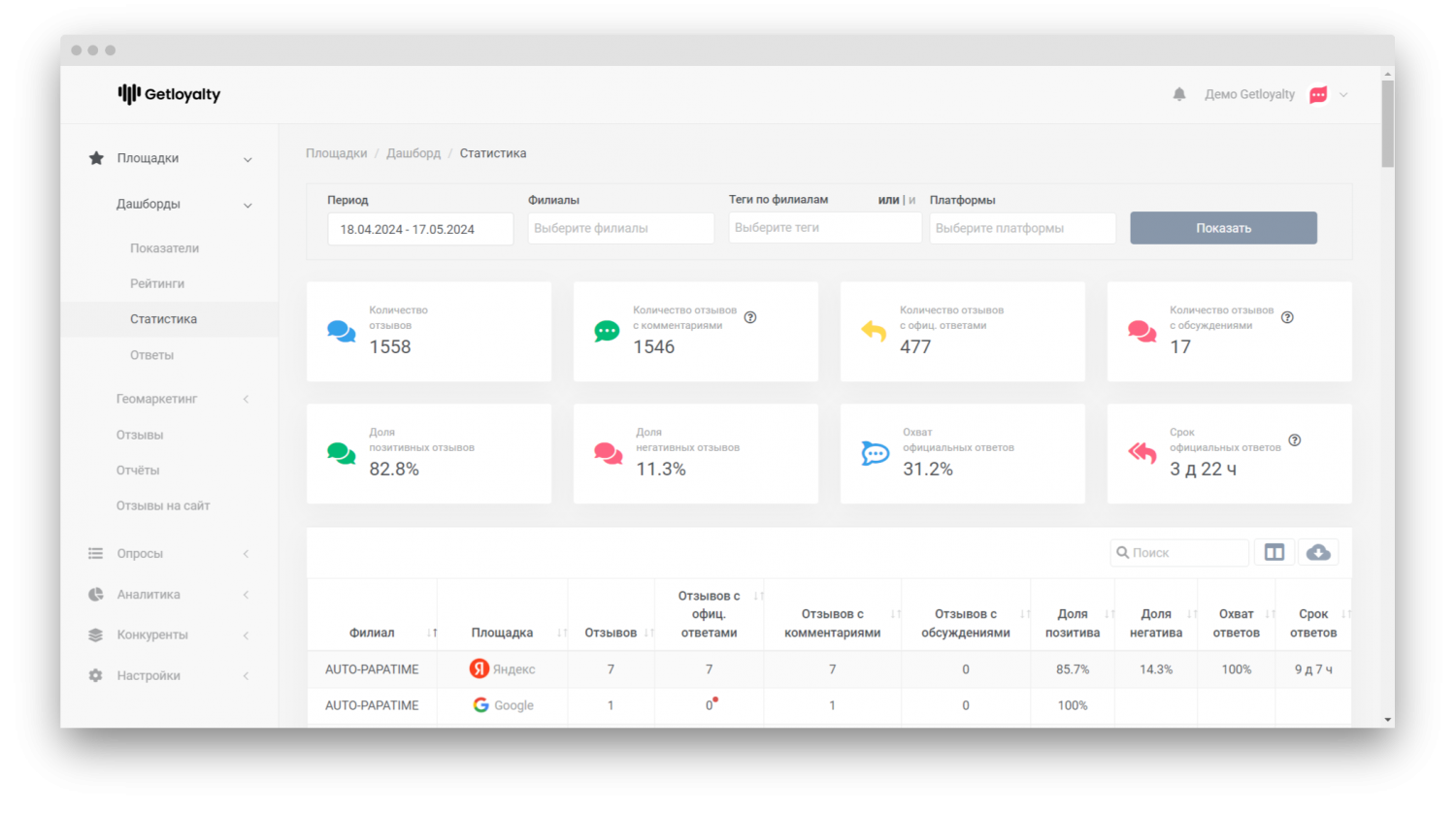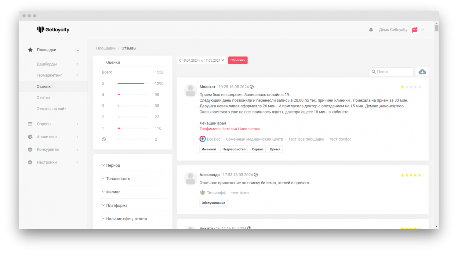 Getloyalty — платформа для управления клиентским опытом и роста продаж. Сделайте управление отзывами максимально простым и эффективным. Получайте уведомления сразу, просматривайте отзывы в едином окне. Реагируйте быстро, и ваша репутация всегда будет под контролем.