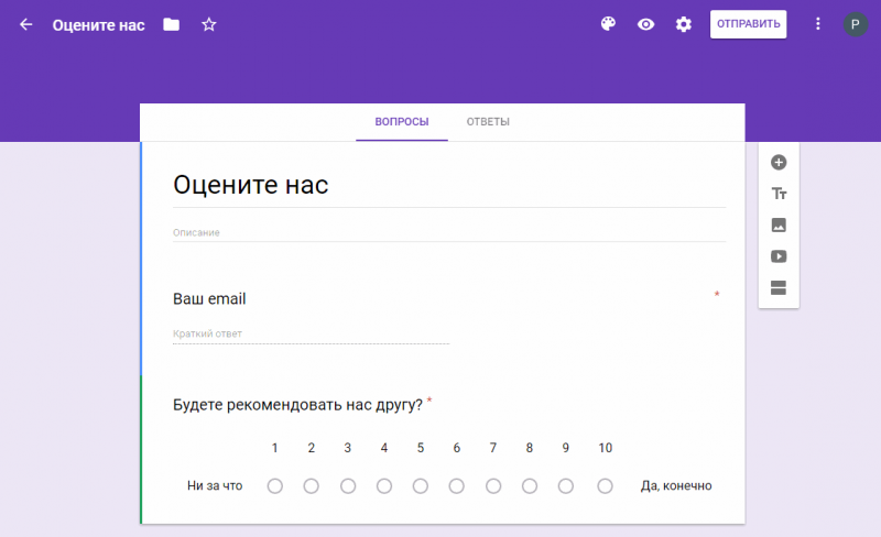 - - Возможность отправить опрос по почте или опубликовать в социальных сетях.