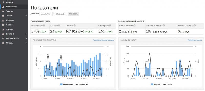 InSales — это продвинутый конструктор интернет-магазинов с CMS и большими возможностями его управления для малого и среднего бизнеса. Здесь доступна даже синхронизация с 1С, выгрузка, поддержка платёжных систем и служб доставки, уведомления, возможность редактирования шаблона HTML, CSS и JS, открытое API.