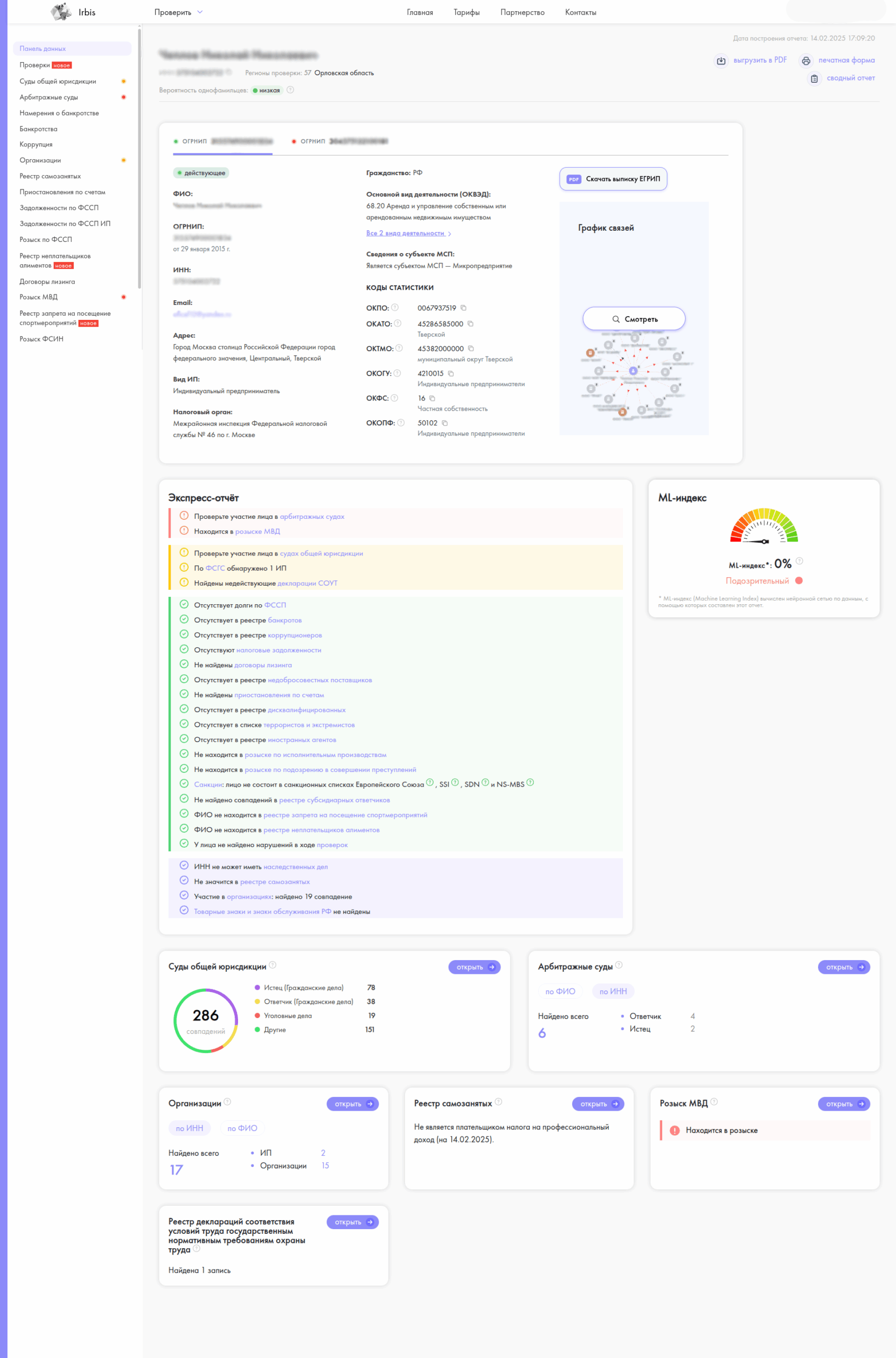 Ирбис — проверка физических лиц, индивидуальных предпринимателей и фирм по открытым государственным источникам России.