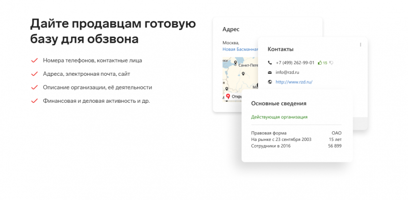 ● Экономия времени на поиске потенциальных клиентов, предоставление менеджерам по продажам готовой базы для обзвона