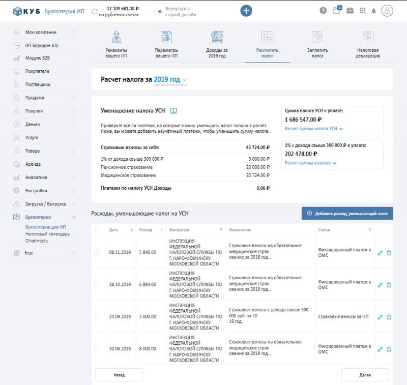 КУБ24.Бухгалтерия ИП — программа для онлайн заполнения налоговой декларации и расчета налогов для ИП на УСН 6%.