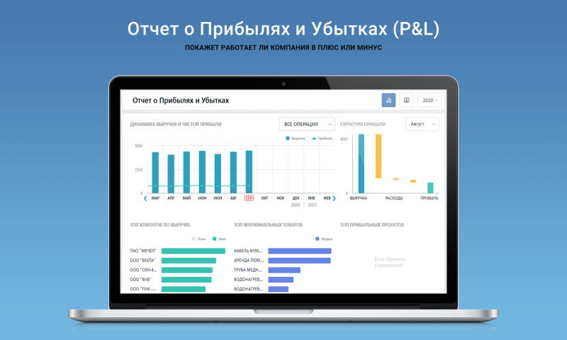 КУБ24.ФинДиректор — сервис управленческого учёта и сквозной аналитики по финансам, маркетингу, продажам и товарам.