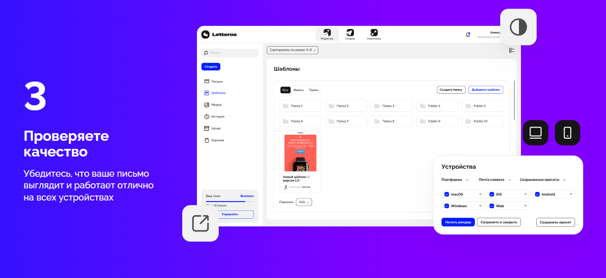 Letteros — это сервис для создания шаблонов и дизайна писем для рассылки.