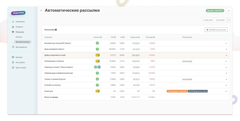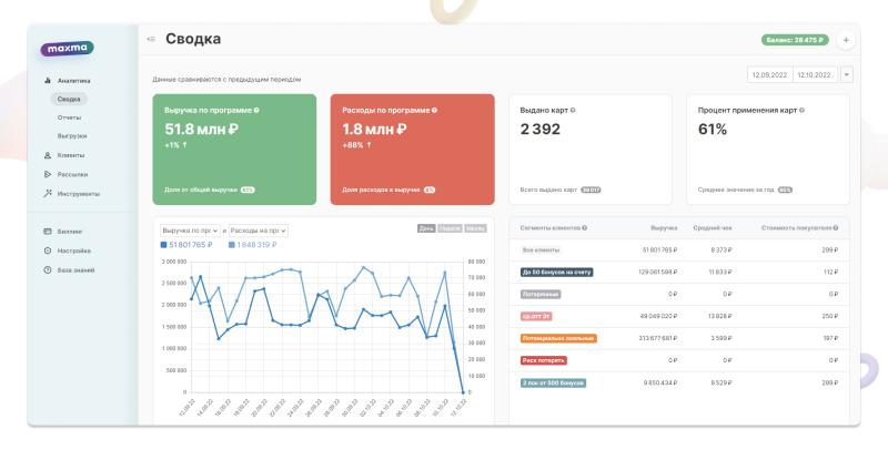 MAXMA — это готовая программа лояльности, персонализация, акции, рассылки (SMS, push, мессенджеры, email) и др.