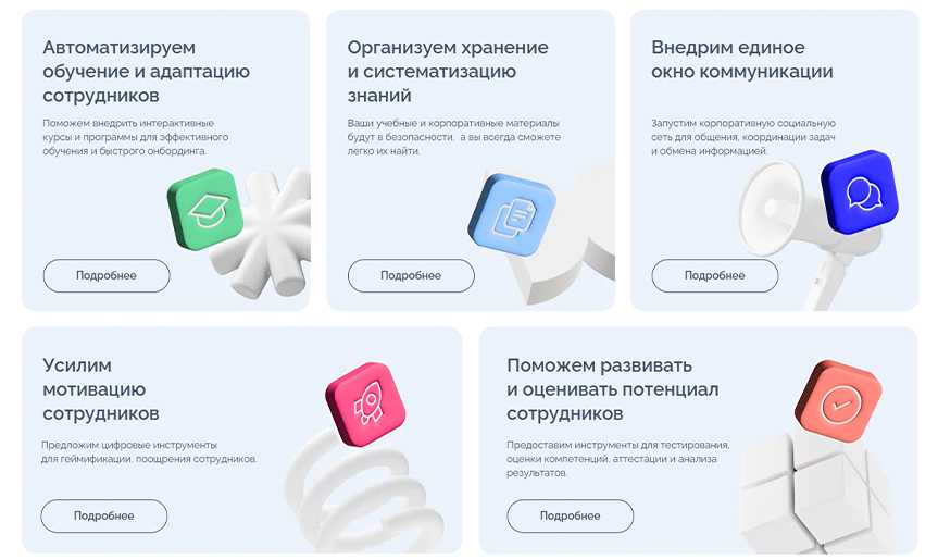 - Отчёты и аналитика: генерация отчётов о результатах обучения и уровне вовлечённости участников.