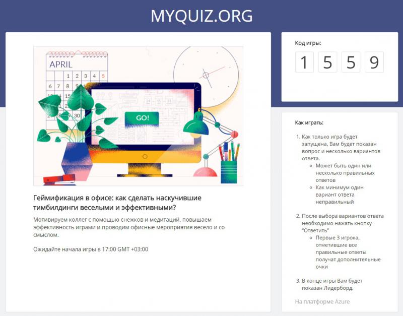 Позволяет проводить викторины со студентами, школьниками, сотрудниками компаний и учебных заведений.
