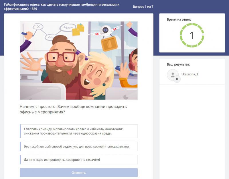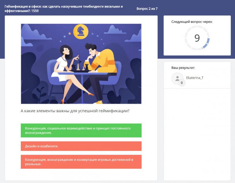 Позволяет преподнести любую информацию в интерактивной форме, совмещая эмоции реальных встреч и соревновательный элемент.