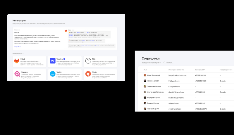 Администрирование сотрудников. Быстро предоставляйте и ограничивайте доступ сотрудников к чатам. Вся информация о сотрудниках компании в одном месте.