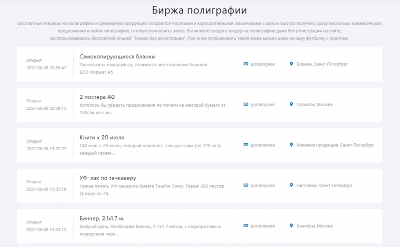 - Биржа заказов на полиграфию, упаковку, рекламную и сувенирную продукцию