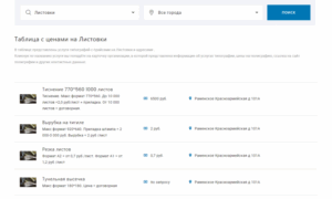 - Витрина офферов от типографий с поиском по видам полиграфии и городам