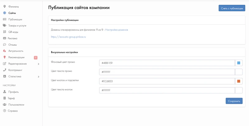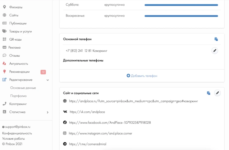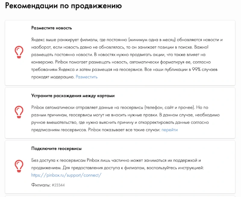 Pinbox — сервис для автоматического обновления данных на геосервисах, управления контентом, обработки отзывов в одном окне. Мини-сайты на базе Pinbox позволят привлекать трафик из поисковых систем по локальным запросам.