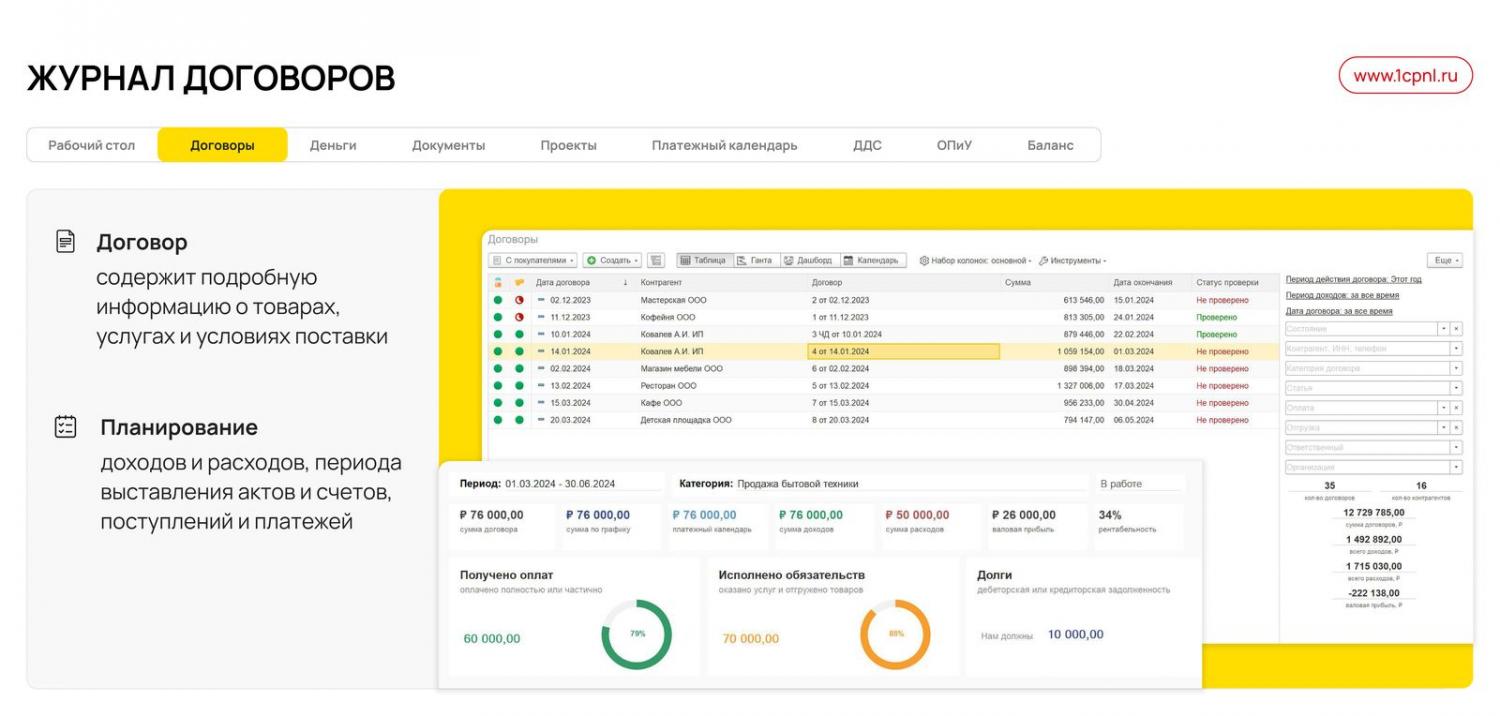 - Журнал договоров - наведите порядок в договорах и возьмите обязательства под контроль.