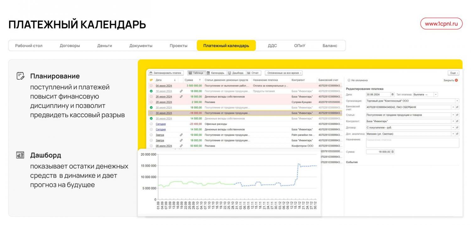 - Платежный календарь - планируйте поступления и платежи - это позволит предвидеть кассовый разрыв.