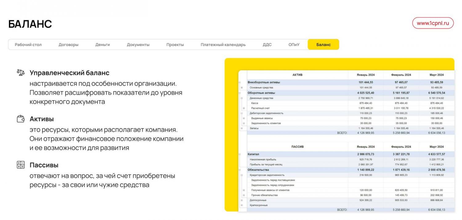 - Заменяет десятки таблиц и формирует финансовые отчеты в один клик.