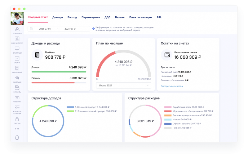 - Финансы и Финансовое планирование. Отчеты о доходах, расходах и перемещениях денежных средств компании, конструктор PnL отчета, отчет о движении денежных средств, отчеты по продажам.