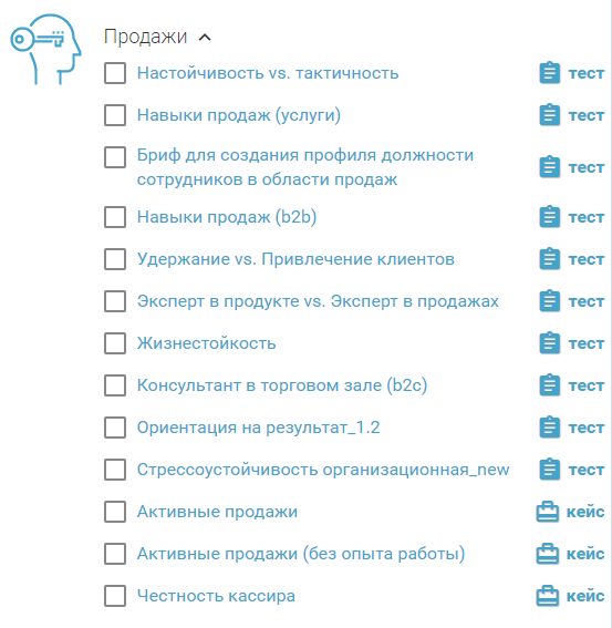 - Готовые блоки вопросов для оценки 15 компетенций - выбор нужных в один клик.