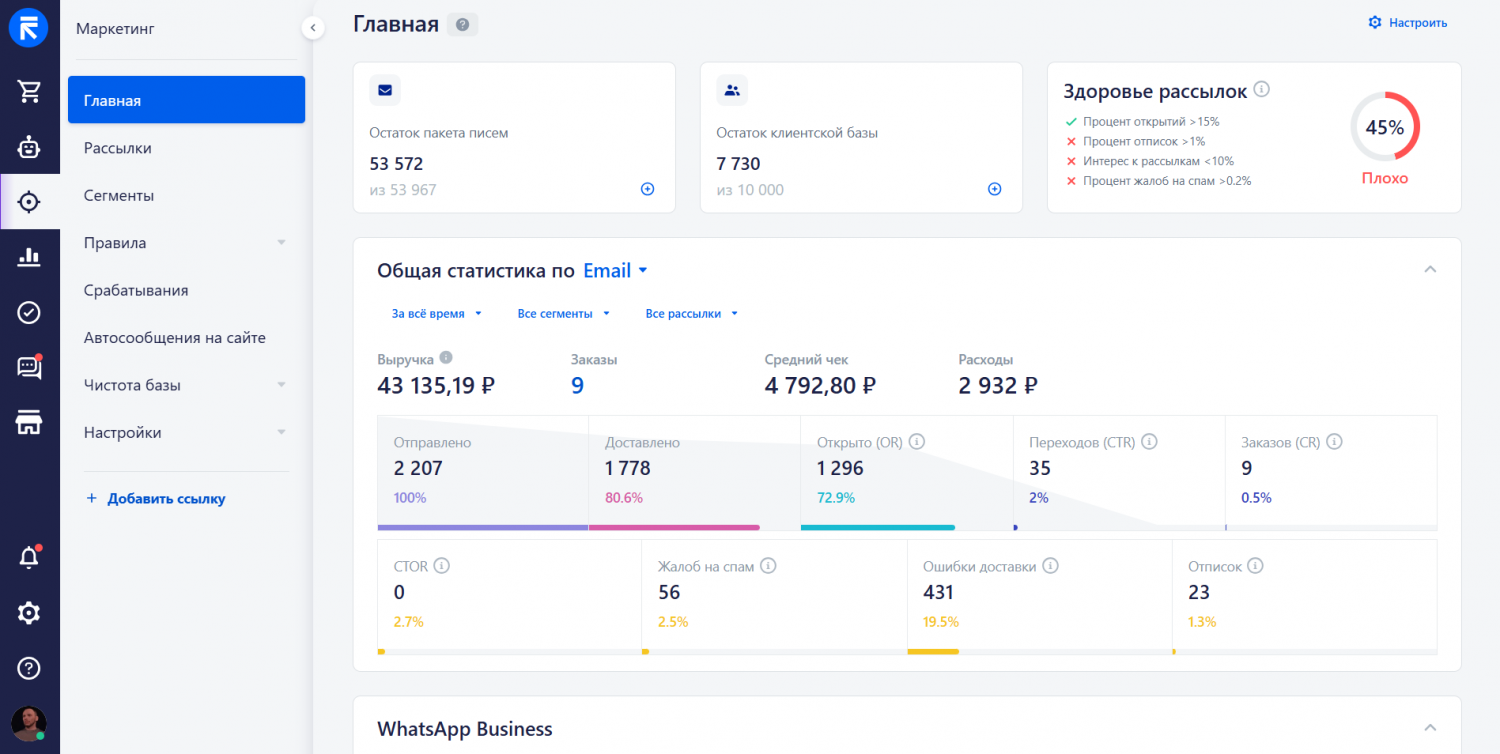- Аналитика рассылок поможет корректировать CRM-стратегию и получать максимум прибыли с коммуникаций.