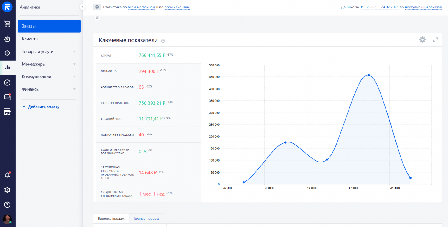 - Отчёты и виджеты по ключевым показателям помогут контролировать бизнес и принимать взвешенные управленческие решения.