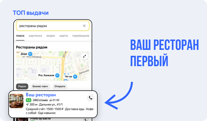 - Честные положительные отзывы в интернете. Позитивные отзывы — это высокий рейтинг. Чем выше рейтинг, тем выше бизнес в поисковой выдаче на картах.