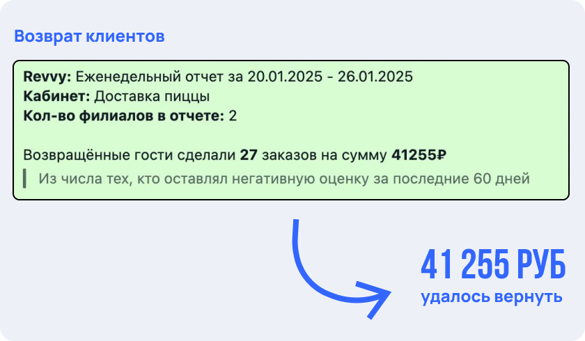 - Продвижение на картах — Revvy мотивирует клиентов оставлять отзывы на онлайн-картах (Яндекс, Google, 2GIS и др.) и на сайтах-отзовиках (ProDoctorov, TripAdvisor и др.) с помощью текстового сообщения после завершения сделки.