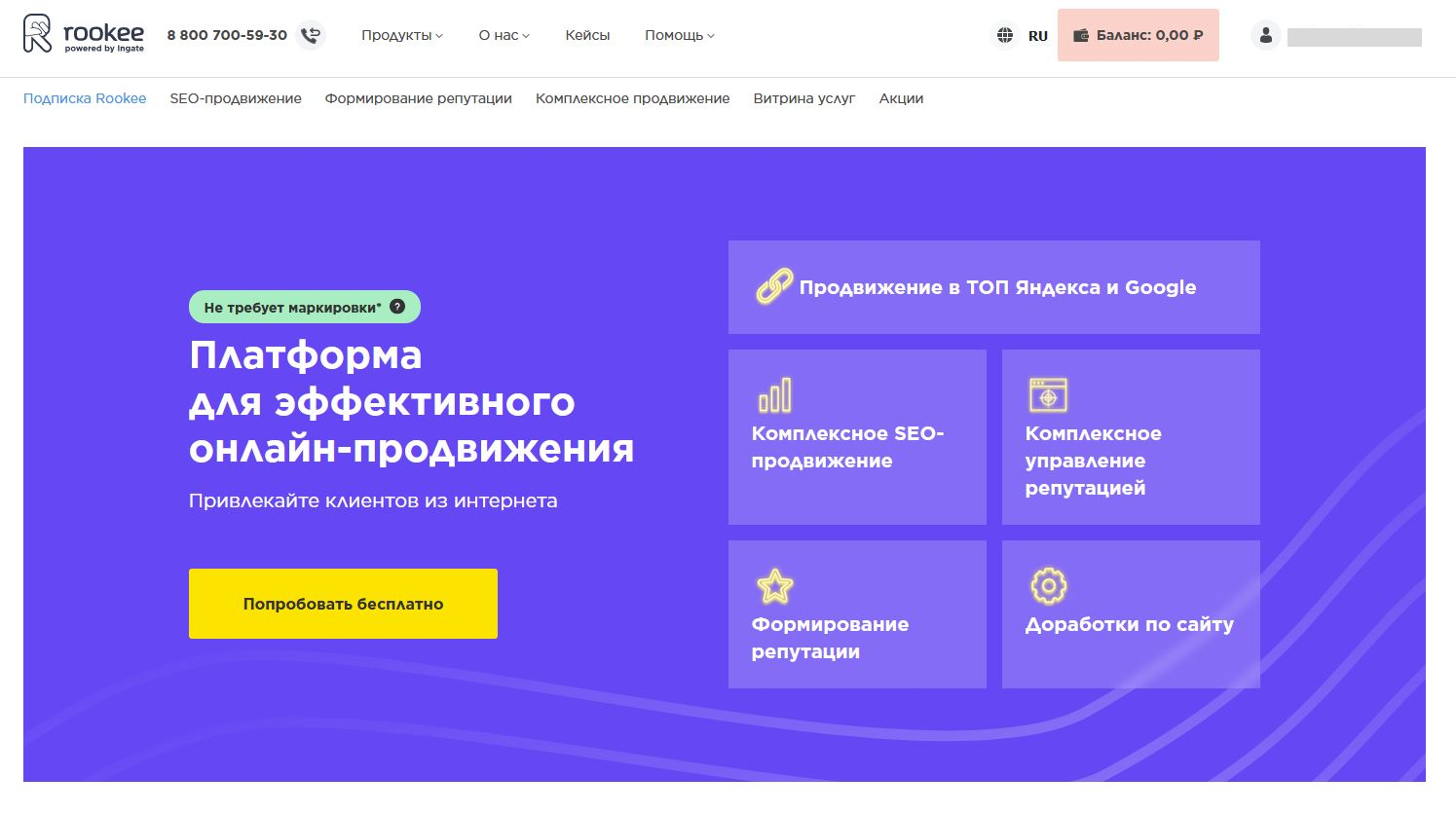 Rookee — это сервис для эффективного онлайн-продвижения бизнеса. С 2010 года Rookee помогает малому и среднему бизнесу находить клиентов в интернете и предоставляет доступные и простые в использовании инструменты для продвижения сайта, формирования репутации, настройки контекстной рекламы.
