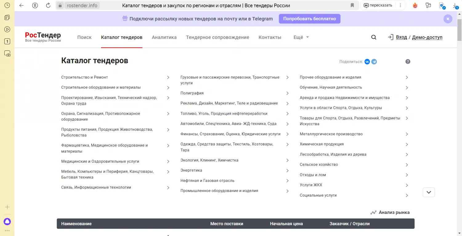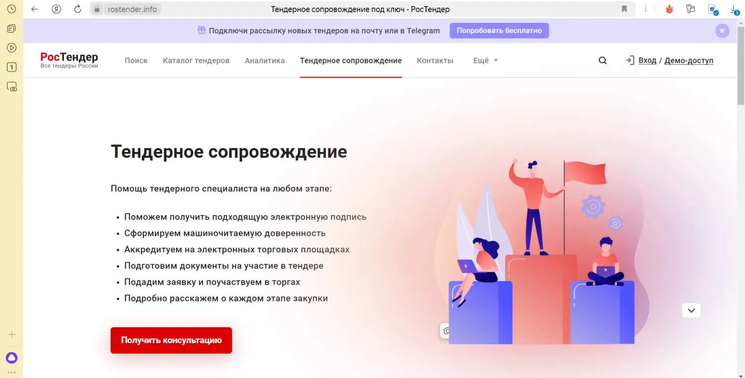 Ростендер очень удобный сервис для поиска и анализа закупок, понравился еще во время тестового периода, как то быстро привыкли к интерфейсу. Все оказалось просто и доступно, но в случае чего тут есть отзывчивая поддержка, они не ждут, пока вы сами решите вопрос, а действительно помогают. Есть возможность настроить под конкретное направление деятельности и по этим настройкам получать уведомления с тендерами. Уведомления позволяют быстро среагировать и просмотреть тендер.