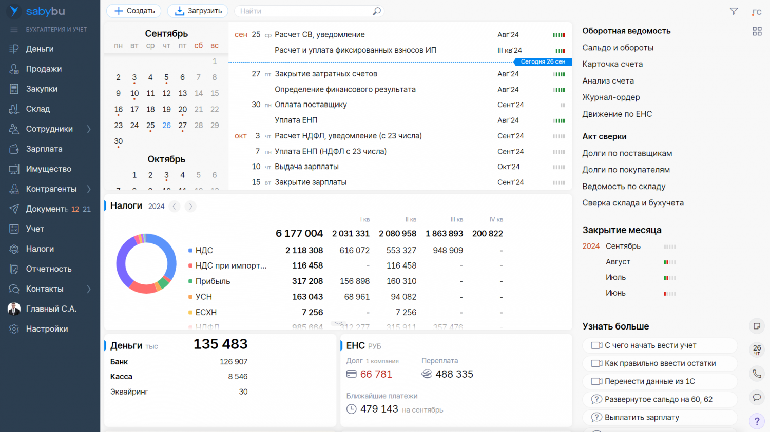 Saby Bu – это онлайн-бухгалтерия со встроенным ЭДО и отчётностью. Подойдет для любой системы налогообложения. Упростит работу с документами, складом, покажет онлайн остатки и движение по ЕНС.