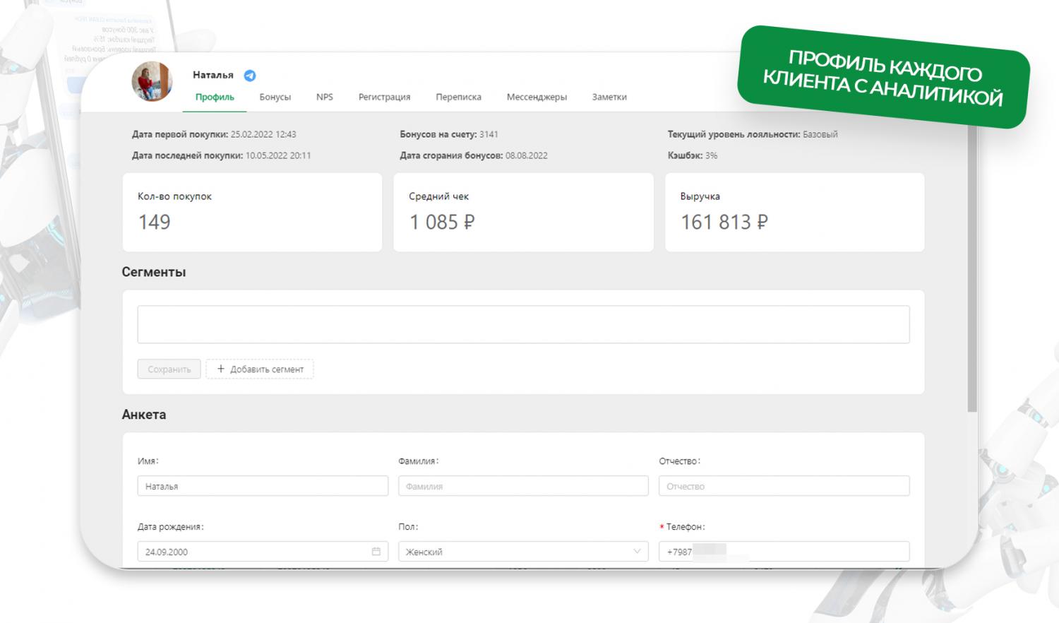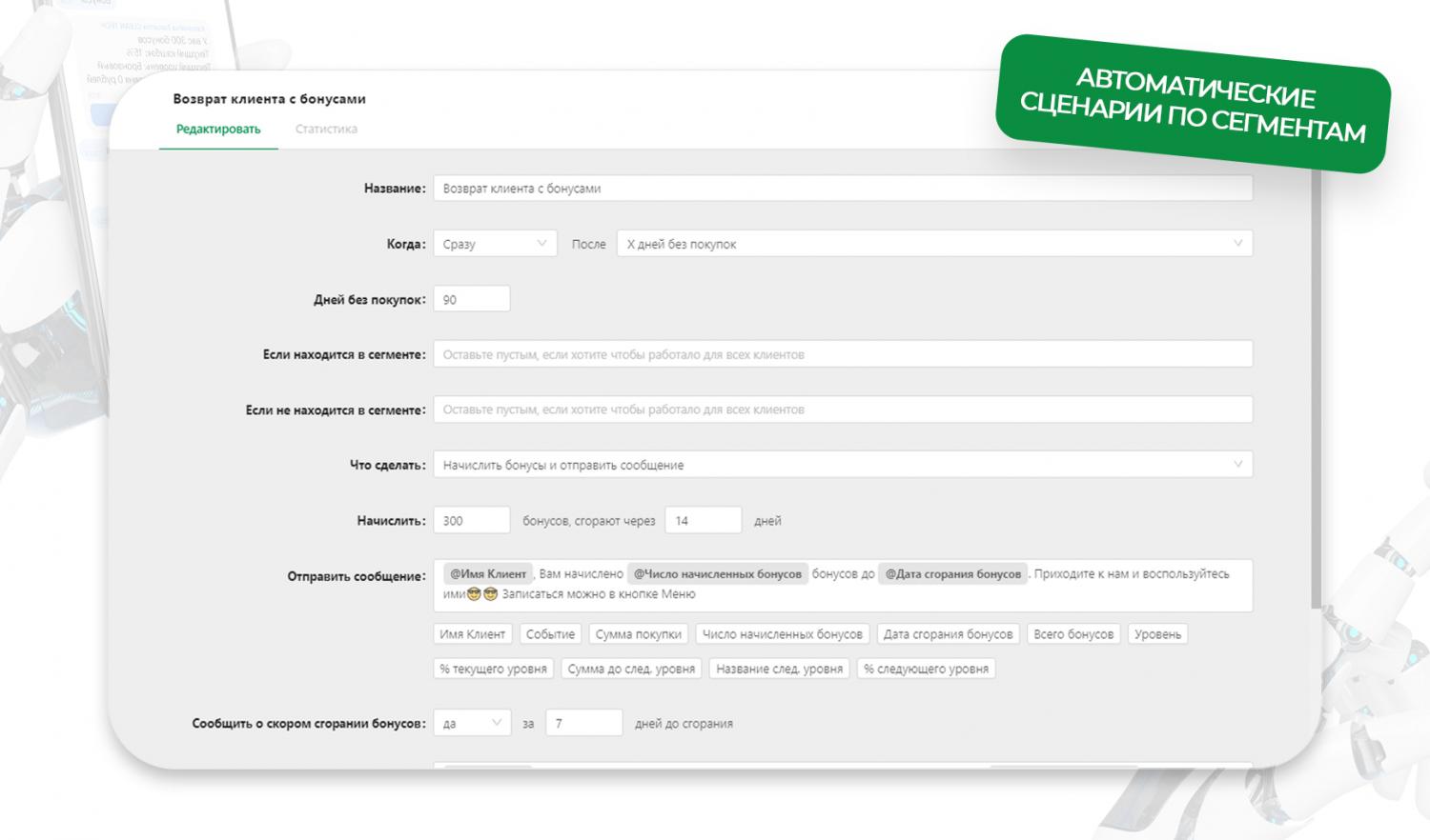 - Сегментируйте клиентскую базу по 36+ параметрам