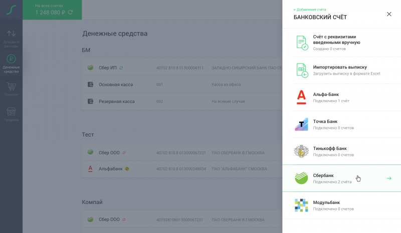 - Интеграции с ведущими банками для малого и среднего бизнеса Сбербанк, Альфа-Банк, Тинькофф банк, Точка, Модульбанк.