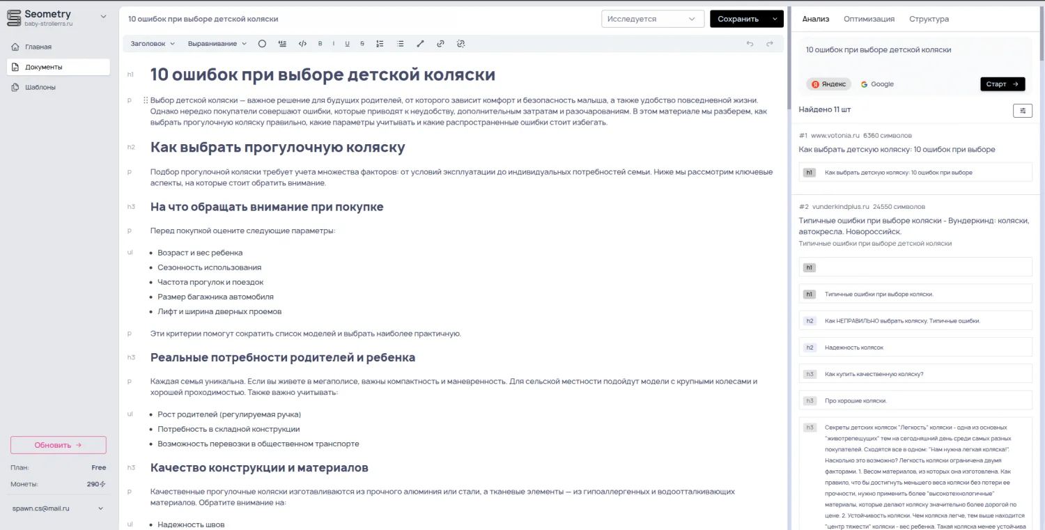 Очень нравится идея AI-ассистента, который помогает редактировать и улучшать уже готовый текст с учётом SEO-данных. Это реально снижает рутинную работу и повышает качество конечного материала. Надеюсь, что со временем этот функционал станет более мощным.