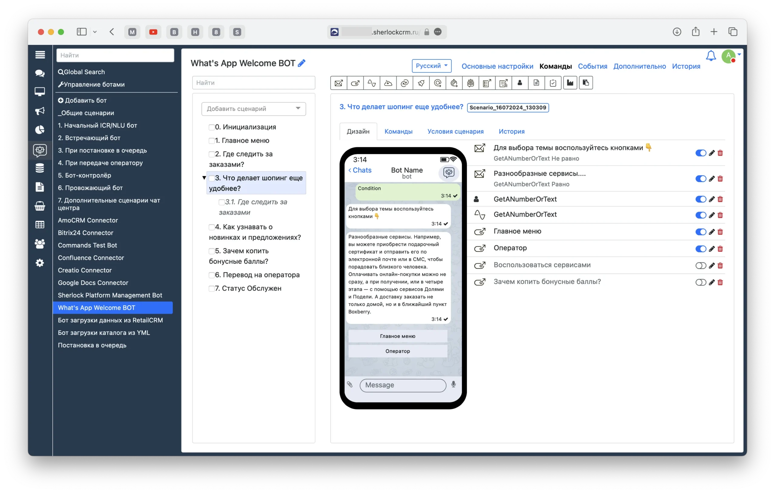 Sherlock создана для высокой нагрузки, глубокой интеграции с CRM, аналитикой и бизнес-процессами. Это решение корпоративного класса для полного цикла работы с клиентом в любых чатах. Объедините процессы поддержки, продажи и маркетинга в мессенджерах - от WhatsApp и Telegram до чатов на сайте.