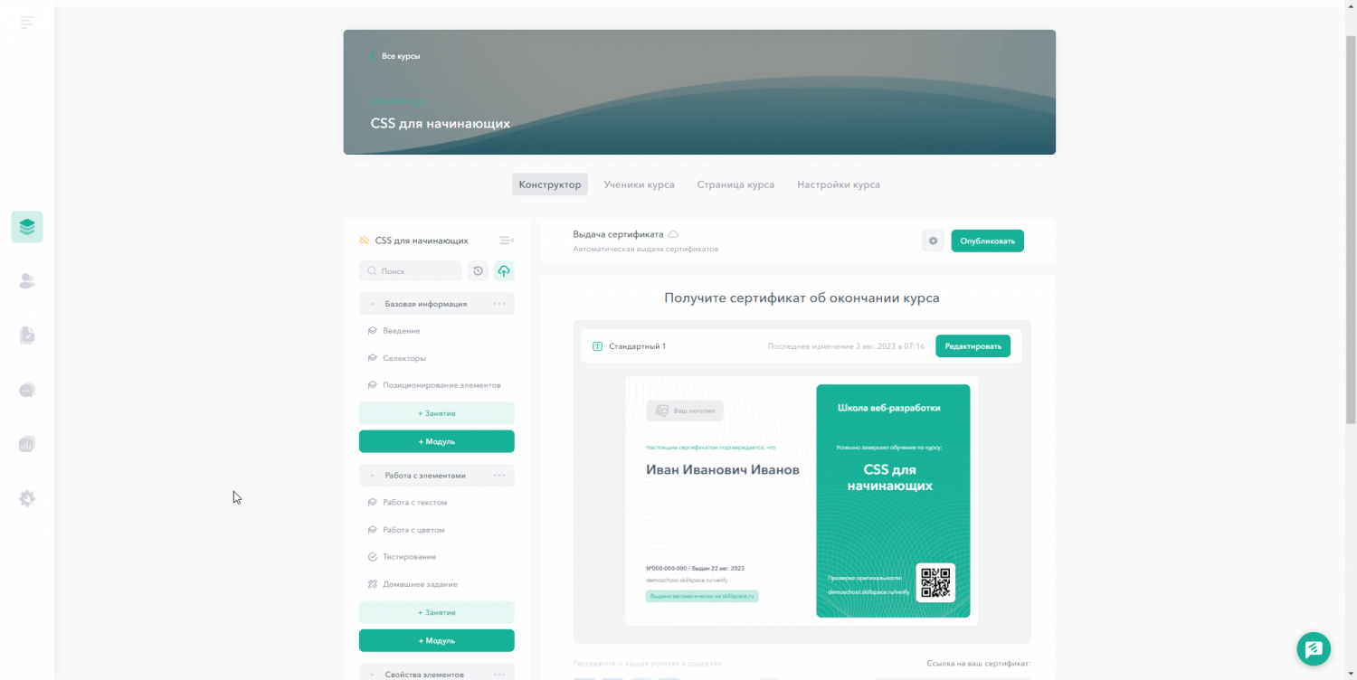 - Встроенный конструктор лендингов для курсов упрощает процесс оформления и продвижения курсов.